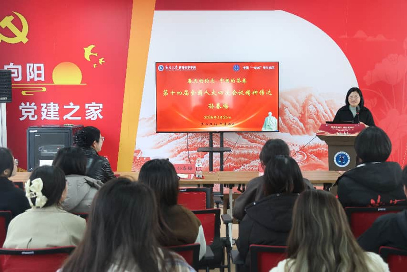 孙春梅作了《春天的约定,中国的答卷——十四届全国人大四次会议精神传达》的主题宣讲。她以亲历者视角,原汁原味传达全国两会精神,重点解读习近平总书记在两会期间重要讲话内容以及“十五五”规划里的新提法。她围绕乡村全面振兴、新农人培育、农文旅融合发展、基层民生保障等核心话题分享感悟与思考,用朴实鲜活的语言,把宏观政策与基层实践紧密结合,让两会精神入耳入脑入心,并寄语青年学子努力学习,在实现中国式现代化征程上展现青春力量。宣讲结束后,孙春梅与学生代表就农村创业、大学生进基层等话题展开深入交流,耐心解答学生问题。现场互动热烈,掌声不断。与会师生纷纷表示,对全国两会精神有了更深刻的理解,更增强了理想信念。