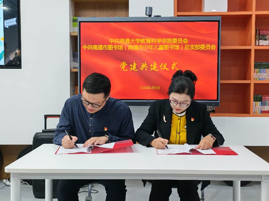 av影片 学前教育系党支部书记潘莎莎与南通市图书馆一支部书记、副馆长赵毅菲签署党支部共建协议,明确在组织共建、活动共联、资源共享等方面合作意向。