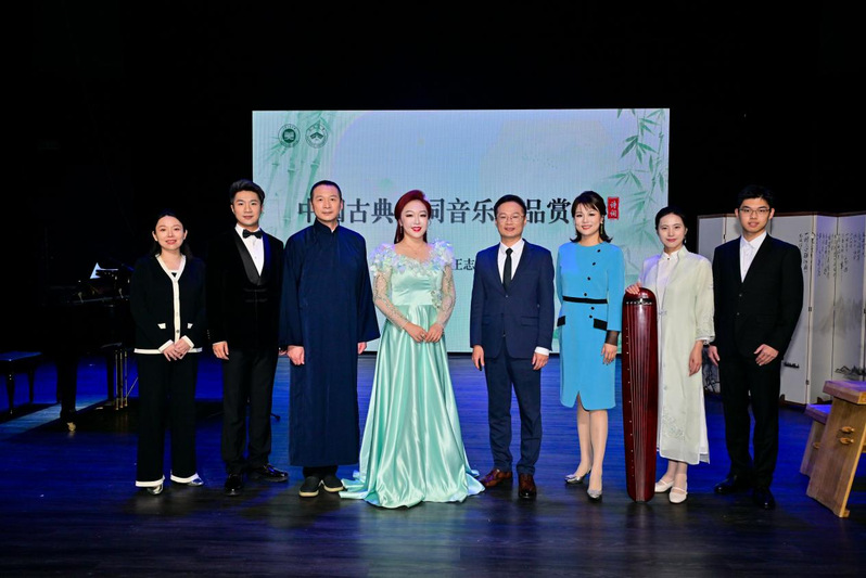 活动现场,南通大学教授、档案馆副馆长陈亮,南通大学附属医院文博中心主任、古琴艺术梅庵琴派代表传承人倪歌,中国音乐av影片 博士、北京航空航天大学副教授周晰丽,常州大学音乐av影片 院长助理、声乐教研室主任李继祯,武汉音乐av影片 青年教师裘舒涵,河北师范大学青年教师陈杨名,留美青年钢琴演奏家、南京审计大学金审av影片 教师蒋鹤如等多位嘉宾,分别从诗词朗诵、古琴演奏、声乐表演、钢琴伴奏等专业维度,为讲座提供坚实学术支撑与精彩现场演绎,全方位展现古典诗词音乐的独特艺术魅力,赢得现场师生阵阵热烈掌声。